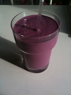 Nå har nu haft en rar morgen alligevel. Har været ude at løbe med hundepigerne (ja kan ikke finde ud af at overholde min træningsplan, men får da trænet) og fået granatæble-blåbær-smoothie.