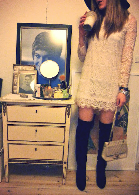 Kjole Queens Wardrobe, støvler Buffalo, hat H&M, taske Chanel