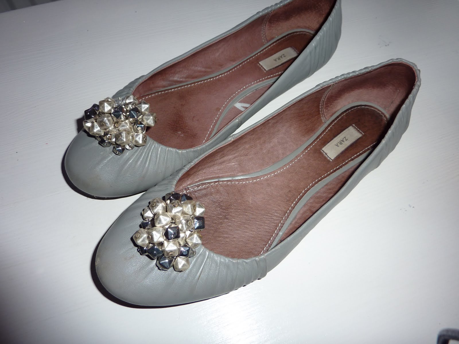 Købte skopynt hos H&M i dag. Synes at det er en meget cool måde at peppe et par sko op på. De guldfarvede vil jeg bruge på et par plain sorte stilletter; så er de julefrokostklar og de sølvfarvede er allerede testet på mine grå Zara ballerinaer, fungerede godt synes jeg. 40 kr. for et sæt koster de.