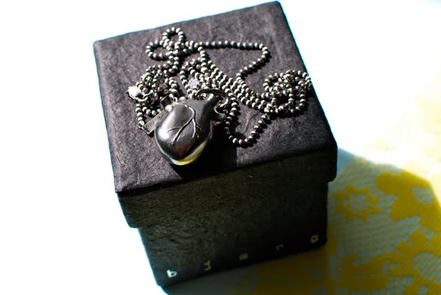 I går forærede jeg mig selv lidt nyt til smykkeskrinet. Et hjerte fra bjørg som jeg synes er lidt uhyggeligt og klamt, men også meget smukt og et par fjerøreringe jeg købte hos en gadesælger. Har længe villet have en lille fjer på, men synes at mange af dem de har i butikkerne ser alt for fake, tilklippede og farvede ud. De her var perfekte, naturlige og lige mine farver ;)