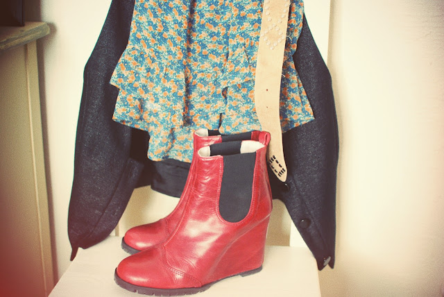 When cleaning out this morning in my bedroom this outfit appeared under layers of clothes on a chair. An old Stella Nova vest and ditto Topshop belt and a new Zara skirt. My Minimarket jodphurs were standing next to the chair and voilà. I like that my clothes seems to style themselves now ;)