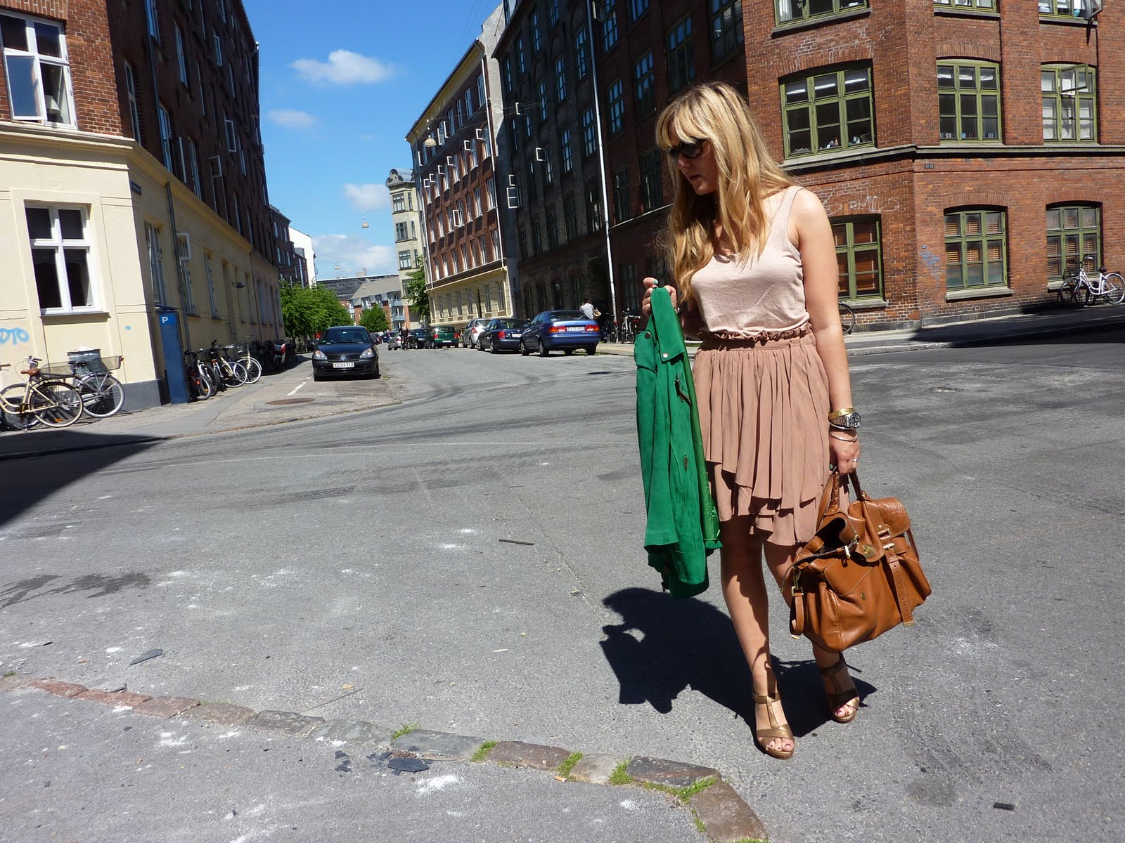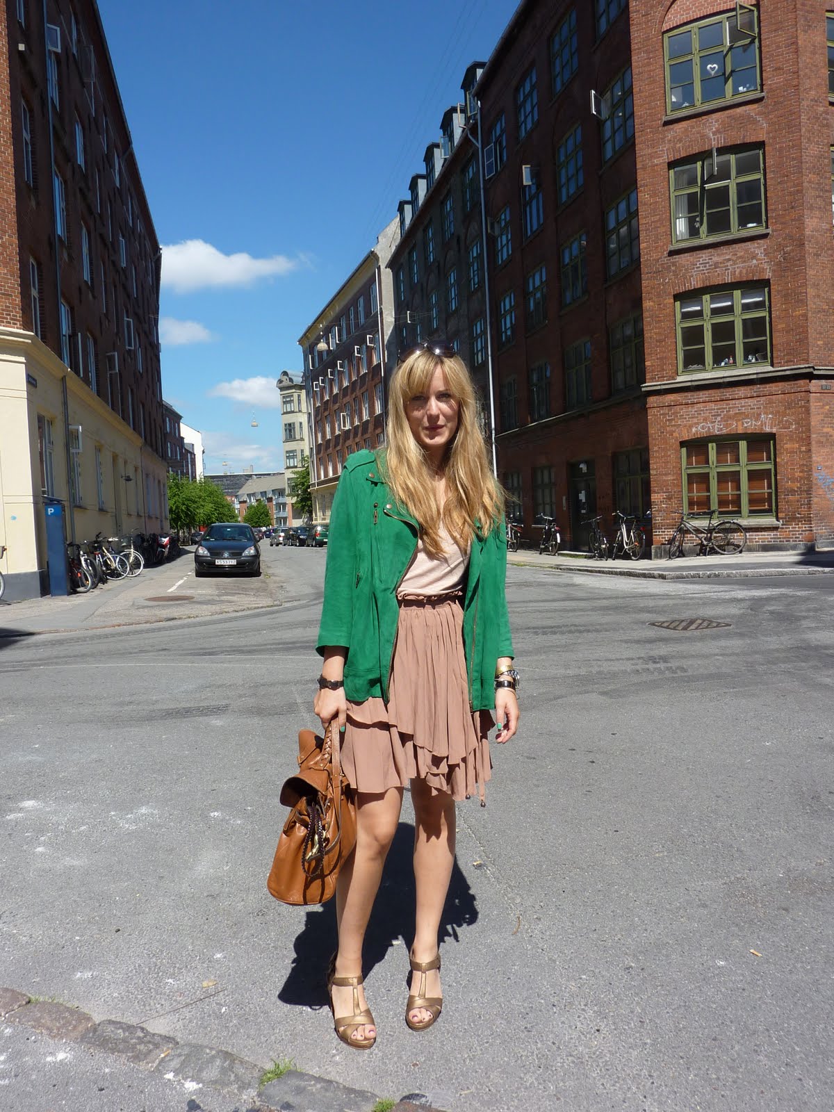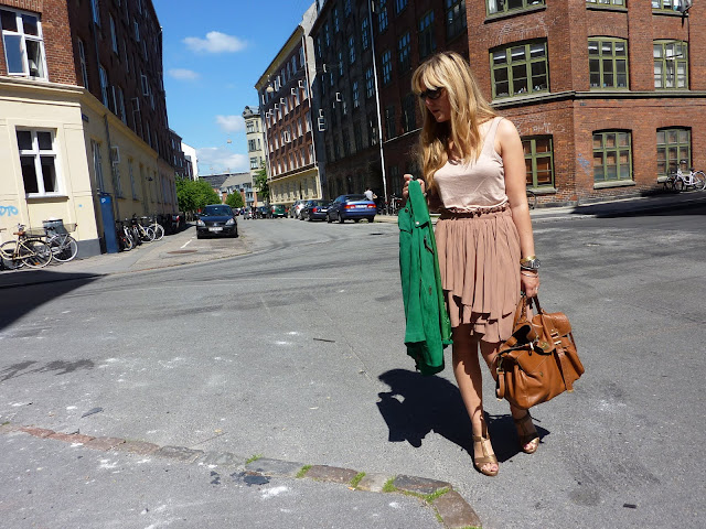 Sådan så jeg ud til brunch i går. Kan godt lide favekombinationen af hudfarvet (hehe, kan godt se det ser dumt ud, må snart æde mine ord), brunt og grønt. Er i øvrigt meget hudfarvet selv, eller også er det bare lyset. Syntes ellers lige jeg var blevet lidt brun…