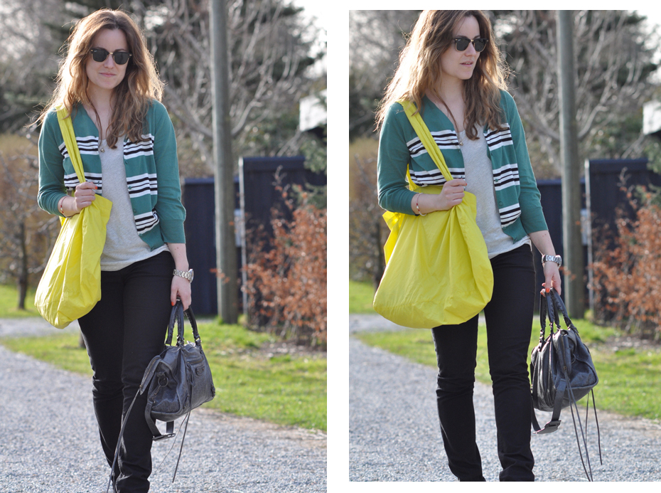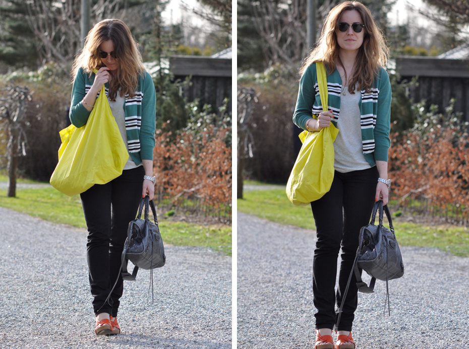 Outfit details: Cardigan + tee + shopper (last season) COS// jeans Filippa K// shoes + bag Balenciaga// sunglasses Ray Ban