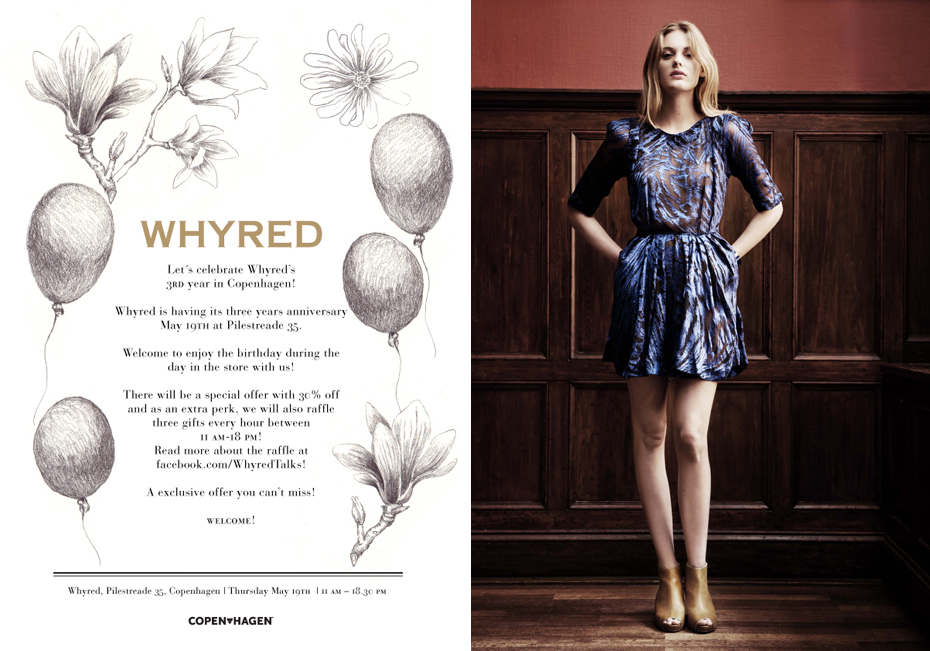 Whyred fejrer deres danske 3-års fødselsdag i morgen i butikken i Pilestræde med en klækkelig rabat og sjove raflekonkurrencer. For at være med i rafleriet skal man blot melde sig til i butikken mindst et par minutter før kl. hel. Altså kl. 11.00 rafles der eksempelvis om en strik, kl. 12.00 om chinos osv. Tror nok lige jeg skal forbi at gramse på ovenviste blå kjole, som jeg har været forelsket i, i et stykke tid. Med 30 % slået af prisen, kunne det jo være at den skulle være min og så kunne det også være jeg skulle prøve raflelykken, selvom jeg så absolut ikke har held i spil.