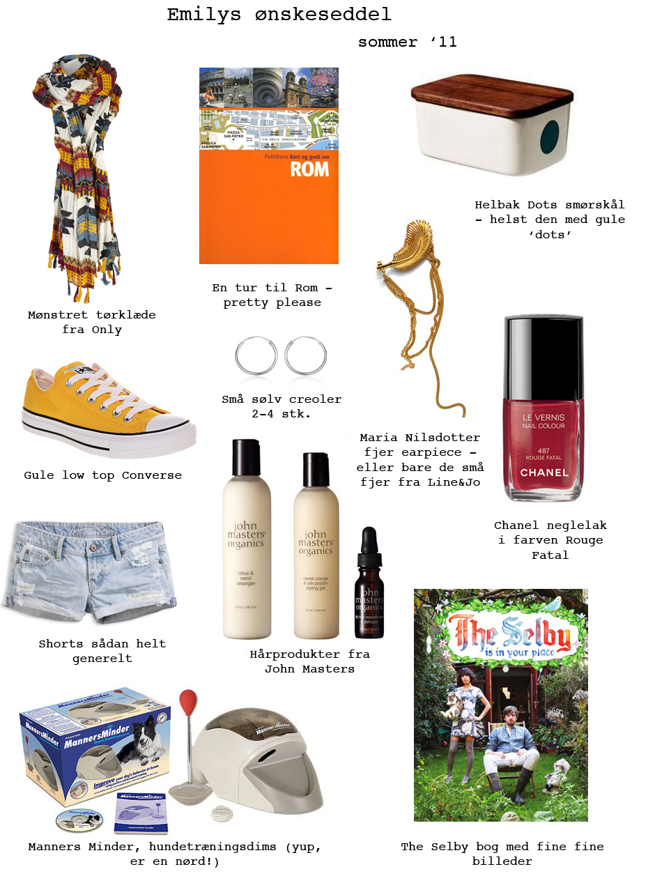 På lørdag er det min fødselsdag og ovenfor er de ting jeg ønsker mig. Har dog tyvstartet og holdt en lille fødselsdagsmiddag i fredags, så har allerede fået nogle af tingene :)