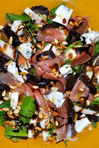 Retten foregår sådan at man får den varme pasta + grøntsager på tallerkenen med en kugle mozzarella og så ‘bygger’ man den ellers selv efter eget ønske. Lidt som en anden hurtig favorit: Lynhurtig pasta med grov pesto.